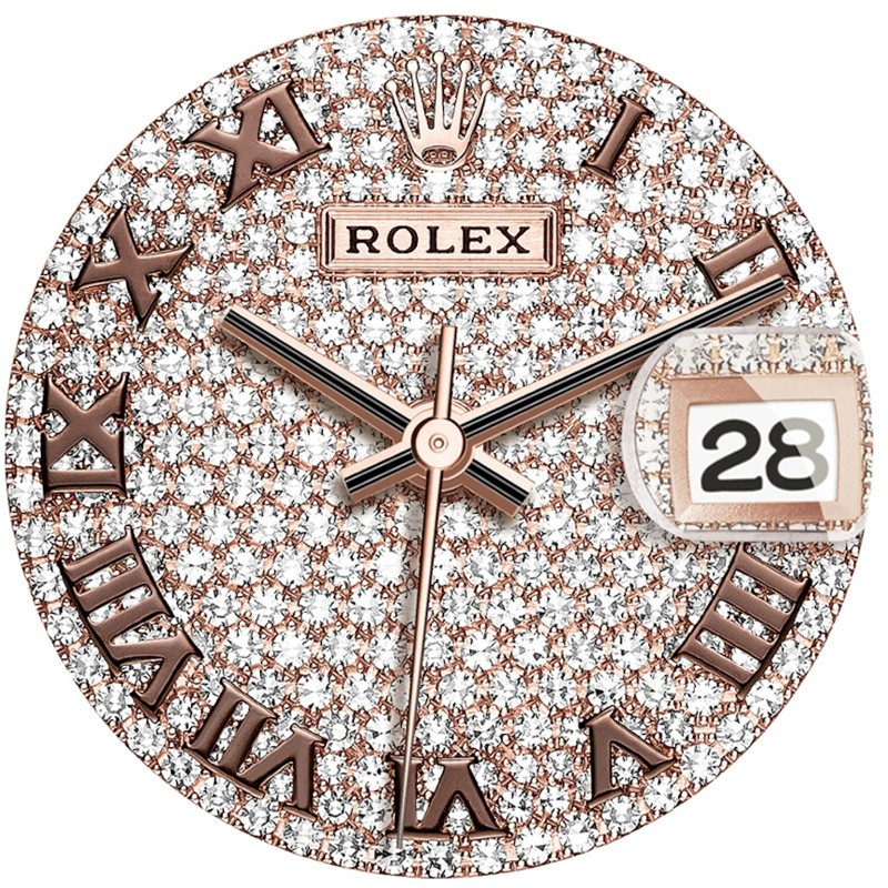 Часы Rolex Lady-Datejust изготовляются из розового золота 18к и отличаются новым циферблатом, который подчеркивает обновленный облик модели. Циферблат из белых бриллиантов. Модель Lady-Datejust оснащена калибром 2236 – механизмом нового поколения с функцией автоматического подзавода, который полностью разработан и изготовлен Ролексом. Данный механизм включает в себя кремниевую спираль Syloxi, запатентованную Ролексом, которая позволяет ему достигать хронометрической сверхточности, уникальной для женской модели часов. Этот механизм отмечен сертификатом Швейцарского хронометра, который выдан Официальным швейцарским институтом хронометрии (COSC). Часы комплектуются браслетом из розового золота 18к.
