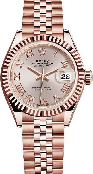 Часы Rolex Lady-Datejust изготовляются из розового золота 18к и отличаются новым циферблатом, который подчеркивает обновленный облик модели. Циферблат серебристый. Новые накладки подчеркивают элегантность и женственность этой модели. Модель Lady-Datejust оснащена калибром 2236 – механизмом нового поколения с функцией автоматического подзавода, который полностью разработан и изготовлен Ролексом. Данный механизм включает в себя кремниевую спираль Syloxi, запатентованную Ролексом, которая позволяет ему достигать хронометрической сверхточности, уникальной для женской модели часов. Этот механизм отмечен сертификатом Швейцарского хронометра, который выдан Официальным швейцарским институтом хронометрии (COSC). Часы комплектуются браслетом из розового золота 18к.