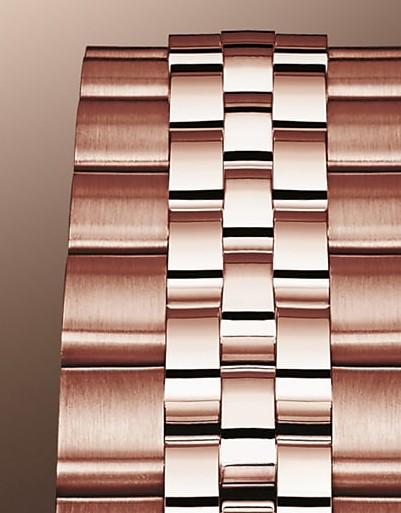 Часы Rolex Lady-Datejust изготовляются из розового золота 18к и отличаются новым циферблатом, который подчеркивает обновленный облик модели. Циферблат золотистый. Модель Lady-Datejust оснащена Калибром 2236 – механизмом нового поколения с функцией автоматического подзавода, который полностью разработан и изготовлен Ролексом. Данный механизм включает в себя кремниевую спираль Syloxi, запатентованную Ролексом, которая позволяет ему достигать хронометрической сверхточности, уникальной для женской модели часов. Этот механизм отмечен сертификатом Швейцарского хронометра, который выдан Официальным швейцарским институтом хронометрии (COSC). Часы комплектуются браслетом из розового золота 18к.