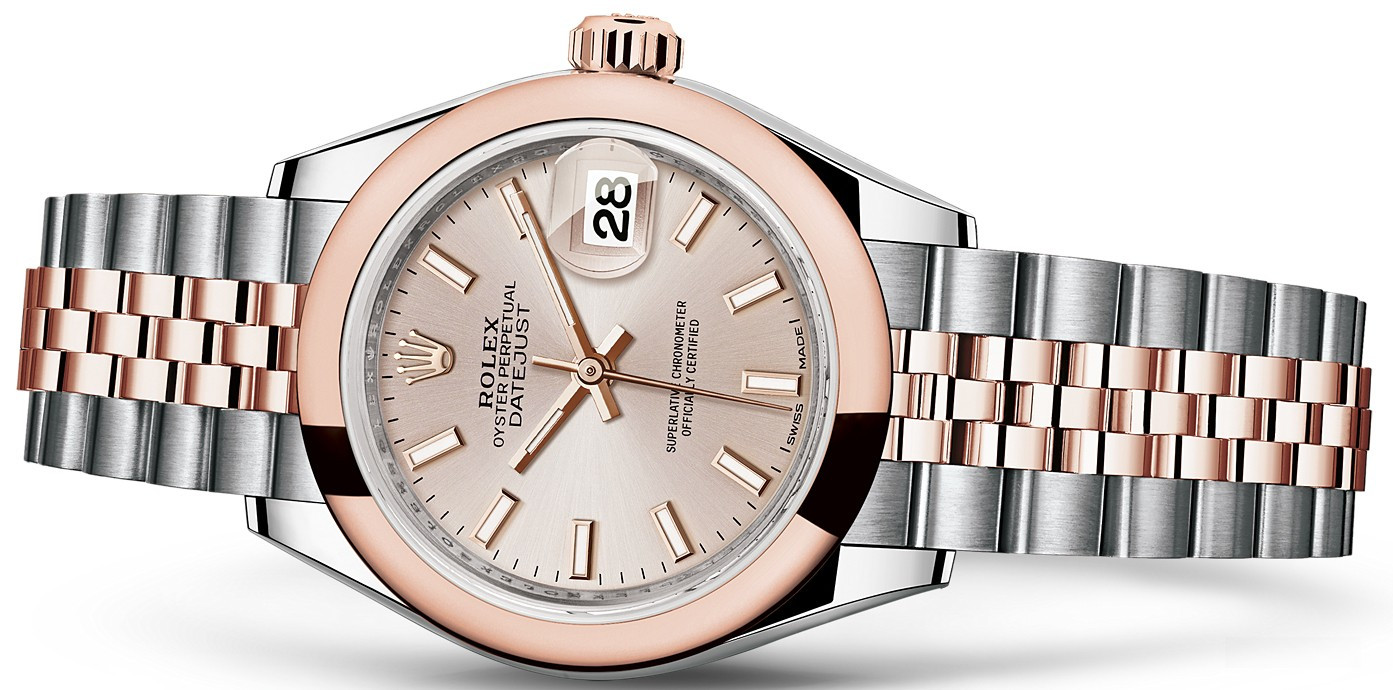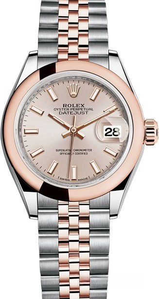 Часы Rolex Lady-Datejust изготовляются из нержавеющей стали и розового золота 18к и отличаются новым циферблатом, который подчеркивает обновленный облик модели. Циферблат серебристый. Модель Lady-Datejust оснащена калибром 2236 – механизмом нового поколения с функцией автоматического подзавода, который полностью разработан и изготовлен Ролексом. Данный механизм включает в себя кремниевую спираль Syloxi, запатентованную Ролексом, которая позволяет ему достигать хронометрической сверхточности, уникальной для женской модели часов. Этот механизм отмечен сертификатом Швейцарского хронометра, который выдан Официальным швейцарским институтом хронометрии (COSC). Часы комплектуются браслетом из нержавеющей стали и розового золота 18к.