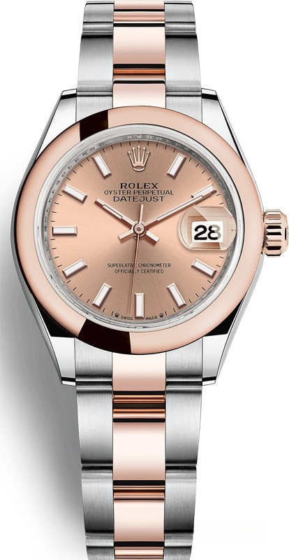 Часы Rolex Lady-Datejust изготовляются из нержавеющей стали и розового золота 18к и отличаются новым циферблатом, который подчеркивает обновленный облик модели. Циферблат золотистый. Модель Lady-Datejust оснащена калибром 2236 – механизмом нового поколения с функцией автоматического подзавода, который полностью разработан и изготовлен Ролексом. Данный механизм включает в себя кремниевую спираль Syloxi, запатентованную Ролексом, которая позволяет ему достигать хронометрической сверхточности, уникальной для женской модели часов. Этот механизм отмечен сертификатом Швейцарского хронометра, который выдан Официальным швейцарским институтом хронометрии (COSC). Часы комплектуются браслетом из нержавеющей стали и розового золота 18к.