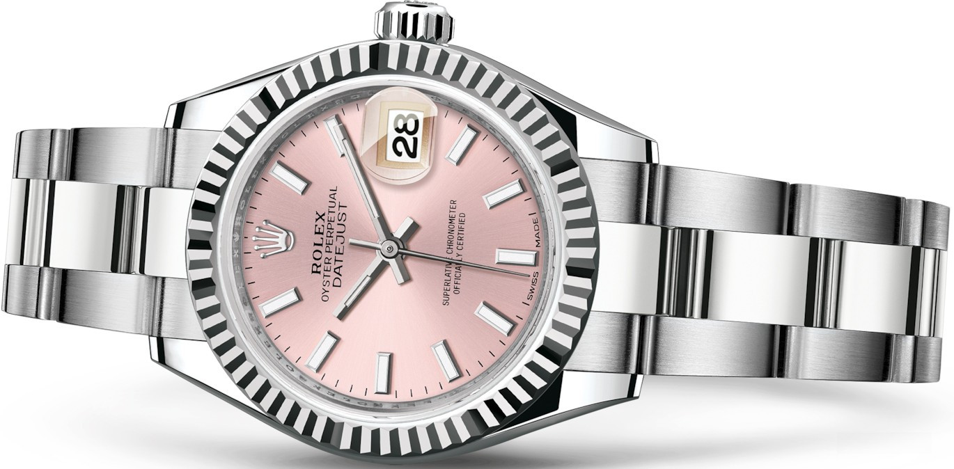 Часы Rolex Lady-Datejust изготовляются из белого золота 18к и нержавющей стали с розовым циферблатом. Модель Lady-Datejust оснащена калибром 2236 – механизмом нового поколения с функцией автоматического подзавода, который полностью разработан и изготовлен Ролексом. Данный механизм включает в себя кремниевую спираль Syloxi, запатентованную Ролексом, которая позволяет ему достигать хронометрической сверхточности, уникальной для женской модели часов. Этот механизм отмечен сертификатом Швейцарского хронометра, который выдан Официальным швейцарским институтом хронометрии (COSC). Часы комплектуются браслетом из нержавеющей стали.