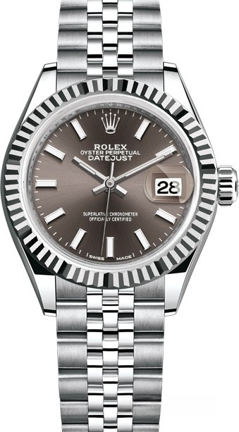 Часы Rolex Lady-Datejust изготовляются из белого золота 18к и нержавеющей стали с серым циферблатом. Модель Lady-Datejust оснащена калибром 2236 – механизмом нового поколения с функцией автоматического подзавода, который полностью разработан и изготовлен Ролексом. Данный механизм включает в себя кремниевую спираль Syloxi, запатентованную Ролексом, которая позволяет ему достигать хронометрической сверхточности, уникальной для женской модели часов. Этот механизм отмечен сертификатом Швейцарского хронометра, который выдан Официальным швейцарским институтом хронометрии (COSC). Часы комплектуются браслетом из нержавеющей стали.