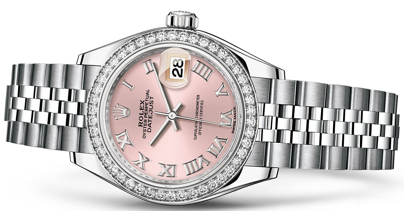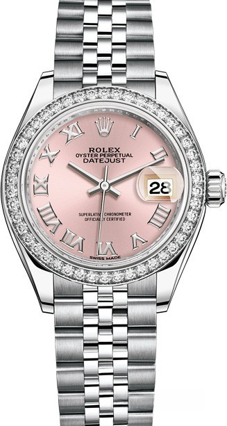 Часы Rolex Lady-Datejust изготовляются из нержавеющей стали и белого золота 18к и отличаются новым циферблатом, который подчеркивает обновленный облик модели. Циферблат розовый. Модель Lady-Datejust оснащена калибром 2236 – механизмом нового поколения с функцией автоматического подзавода, который полностью разработан и изготовлен Ролексом. Данный механизм включает в себя кремниевую спираль Syloxi, запатентованную Ролексом, которая позволяет ему достигать хронометрической сверхточности, уникальной для женской модели часов. Этот механизм отмечен сертификатом Швейцарского хронометра, который выдан Официальным швейцарским институтом хронометрии (COSC). Часы комплектуются браслетом из нержавеющей стали. Безель из белых бриллиантов.
