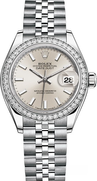 Часы Rolex Lady-Datejust изготовляются из нержавеющей стали и белого золота 18к и отличаются новым циферблатом, который подчеркивает обновленный облик модели. Циферблат серебристый. Модель Lady-Datejust оснащена калибром 2236 – механизмом нового поколения с функцией автоматического подзавода, который полностью разработан и изготовлен Ролексом. Данный механизм включает в себя кремниевую спираль Syloxi, запатентованную Ролексом, которая позволяет ему достигать хронометрической сверхточности, уникальной для женской модели часов. Этот механизм отмечен сертификатом Швейцарского хронометра, который выдан Официальным швейцарским институтом хронометрии (COSC). Часы комплектуются браслетом из нержавеющей стали. Безель из белых бриллиантов.