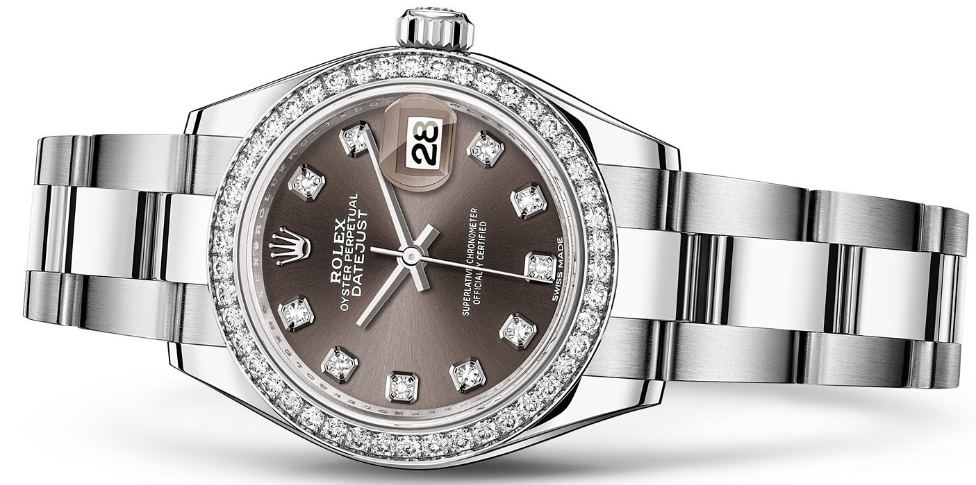 Часы Rolex Lady-Datejust изготовляются из нержавеющей стали и белого золота 18к и отличаются новым циферблатом, который подчеркивает обновленный облик модели. Циферблат коричневый с 10-ю белыми бриллиантами. Модель Lady-Datejust оснащена калибром 2236 – механизмом нового поколения с функцией автоматического подзавода, который полностью разработан и изготовлен Ролексом. Данный механизм включает в себя кремниевую спираль Syloxi, запатентованную Ролексом, которая позволяет ему достигать хронометрической сверхточности, уникальной для женской модели часов. Этот механизм отмечен сертификатом Швейцарского хронометра, который выдан Официальным швейцарским институтом хронометрии (COSC). Часы комплектуются браслетом из нержавеющей стали. Безель из белых бриллиантов.