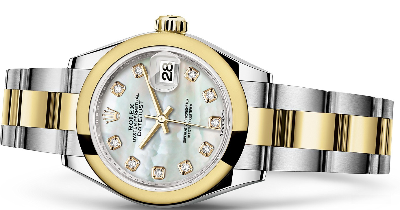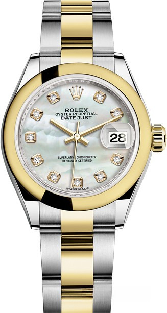 Часы Rolex Lady-Datejust изготовляются из нержавеющей стали и желтого золота 18к и отличаются новым циферблатом, который подчеркивает обновленный облик модели. Циферблат белый жемчужный, 10 белых бриллиантов. Модель Lady-Datejust оснащена калибром 2236 – механизмом нового поколения с функцией автоматического подзавода, который полностью разработан и изготовлен Ролексом. Данный механизм включает в себя кремниевую спираль Syloxi, запатентованную Ролексом, которая позволяет ему достигать хронометрической сверхточности, уникальной для женской модели часов. Этот механизм отмечен сертификатом Швейцарского хронометра, который выдан Официальным швейцарским институтом хронометрии (COSC). Часы комплектуются браслетом из нержавеющей стали и желтого золота 18к.