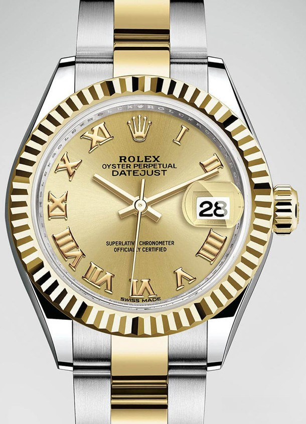 Часы Rolex Lady-Datejust изготовляются из нержавеющей стали и желтого золота 18к и отличаются новым циферблатом, который подчеркивает обновленный облик модели. Благодаря применению технологии двойной отделки, в которой сочетается нанесение рисунка и отделка циферблата с солнечным переливом, циферблат отличается уникальной цветопередачей. Новые накладки подчеркивают элегантность и женственность этой модели. Модель Lady-Datejust оснащена калибром 2236 – механизмом нового поколения с функцией автоматического подзавода, который полностью разработан и изготовлен Ролексом. Данный механизм включает в себя кремниевую спираль Syloxi, запатентованную Ролексом, которая позволяет ему достигать хронометрической сверхточности, уникальной для женской модели часов. Этот механизм отмечен сертификатом Швейцарского хронометра, который выдан Официальным швейцарским институтом хронометрии (COSC). Часы комплектуются браслетом из нержавеющей стали и желтого золота 18к.