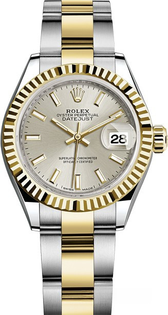 Часы Rolex Lady-Datejust изготовляются из нержавеющей стали и желтого золота 18к и отличаются новым циферблатом, который подчеркивает обновленный облик модели. Циферблат серебристый. Модель Lady-Datejust оснащена калибром 2236 – механизмом нового поколения с функцией автоматического подзавода, который полностью разработан и изготовлен Ролексом. Данный механизм включает в себя кремниевую спираль Syloxi, запатентованную Ролексом, которая позволяет ему достигать хронометрической сверхточности, уникальной для женской модели часов. Этот механизм отмечен сертификатом Швейцарского хронометра, который выдан Официальным швейцарским институтом хронометрии (COSC). Часы комплектуются браслетом из нержавеющей стали и желтого золота 18к.