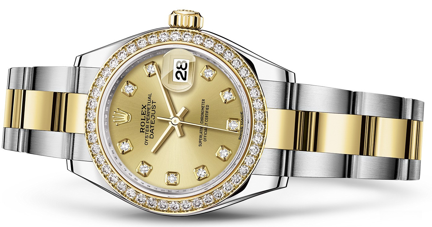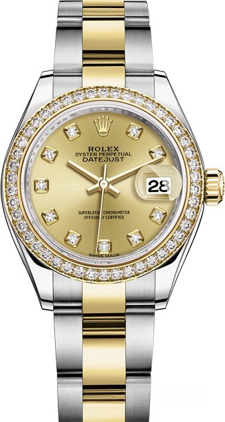 Часы Rolex Lady-Datejust изготовляются из нержавеющей стали и желтого золота 18к и отличаются новым циферблатом, который подчеркивает обновленный облик модели. Циферблат зеленый гильошированный с 10-ю белыми бриллиантами. Безель из белых бриллиантов. Модель Lady-Datejust оснащена калибром 2236 – механизмом нового поколения с функцией автоматического подзавода, который полностью разработан и изготовлен Ролексом. Данный механизм включает в себя кремниевую спираль Syloxi, запатентованную Ролексом, которая позволяет ему достигать хронометрической сверхточности, уникальной для женской модели часов. Этот механизм отмечен сертификатом Швейцарского хронометра, который выдан Официальным швейцарским институтом хронометрии (COSC). Часы комплектуются браслетом из нержавеющей стали и желтого золота 18к.