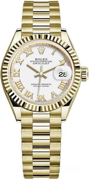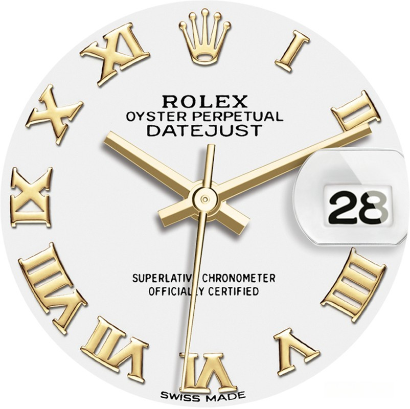Часы Rolex Lady-Datejust изготовляются из желтого золота 18к и отличаются новым циферблатом, который подчеркивает обновленный облик модели. Циферблат белый. Модель Lady-Datejust оснащена калибром 2236 – механизмом нового поколения с функцией автоматического подзавода, который полностью разработан и изготовлен Ролексом. Данный механизм включает в себя кремниевую спираль Syloxi, запатентованную Ролексом, которая позволяет ему достигать хронометрической сверхточности, уникальной для женской модели часов. Этот механизм отмечен сертификатом Швейцарского хронометра, который выдан Официальным швейцарским институтом хронометрии (COSC). Часы комплектуются браслетом из желтого золота 18к.