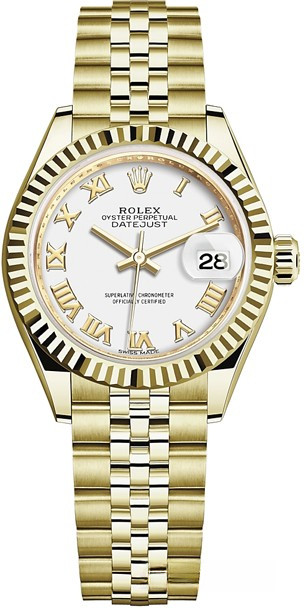 Часы Rolex Lady-Datejust изготовляются из желтого золота 18к и отличаются новым циферблатом, который подчеркивает обновленный облик модели. Циферблат белый. Модель Lady-Datejust оснащена калибром 2236 – механизмом нового поколения с функцией автоматического подзавода, который полностью разработан и изготовлен Ролексом. Данный механизм включает в себя кремниевую спираль Syloxi, запатентованную Ролексом, которая позволяет ему достигать хронометрической сверхточности, уникальной для женской модели часов. Этот механизм отмечен сертификатом Швейцарского хронометра, который выдан Официальным швейцарским институтом хронометрии (COSC). Часы комплектуются браслетом из желтого золота 18к.