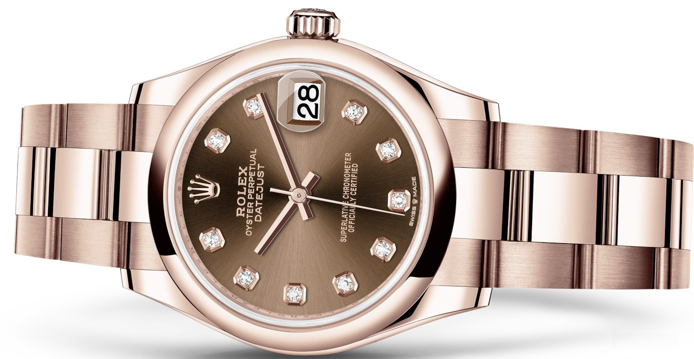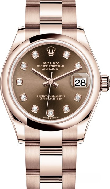 Часы Rolex Datejust Datejust 31mm Everose Gold 278245-0015 выпущены в круглом корпусе из розового золота 18к. Размер составляет 31 мм, водонепроницаемость 100 м. Внутри корпуса установлен автоматический механизм, Калибр 2236 с запасом хода 55 часов. На коричневом циферблате с 10-ю белыми бриллиантами отображаются часы, минуты, секунды, дата. Часы комплектуются браслетом из розового золота 18к.