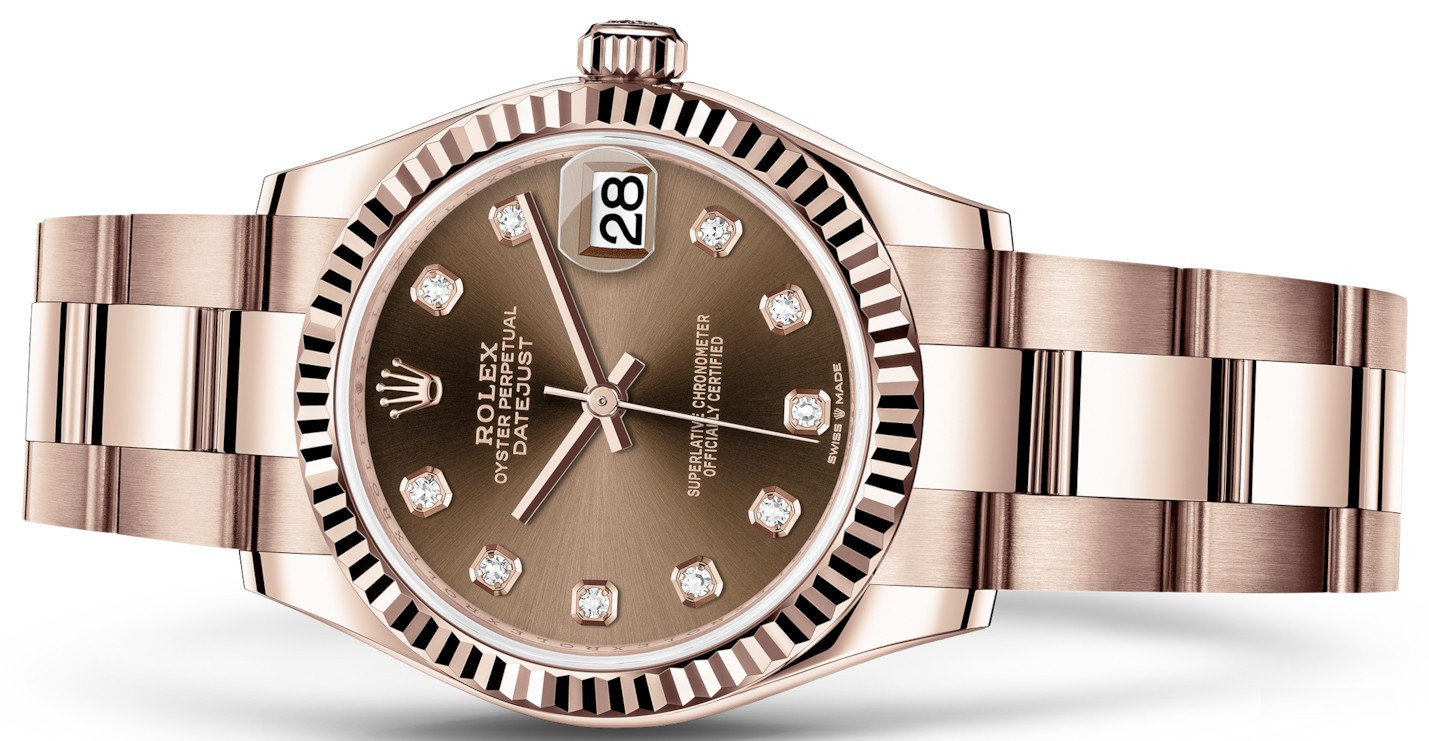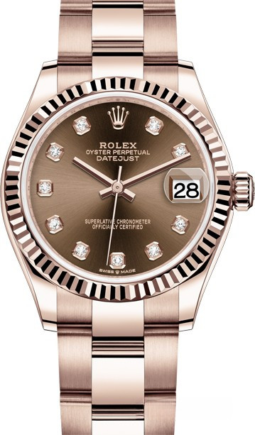 Часы Rolex Datejust Datejust 31mm Everose Gold 278275-0017 выпущены в круглом корпусе из розового золота 18к. Размер составляет 31 мм, водонепроницаемость 100 м. Внутри корпуса установлен автоматический механизм, Калибр 2236 с запасом хода 55 часов. На коричневом с 10-ю белыми бриллиантами циферблате отображаются часы, минуты, секунды, дата. Часы комплектуются браслетом из розового золота 18к.