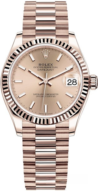Часы Rolex Datejust Datejust 31mm Everose Gold выпущены в круглом корпусе из розового золота 18к. Размер составляет 31 мм, водонепроницаемость 100 м. Внутри корпуса установлен автоматический механизм, Калибр 2236 с запасом хода 55 часов. На золотистом циферблате отображаются часы, минуты, секунды, дата. Часы комплектуются браслетом из розового золота 18к.
