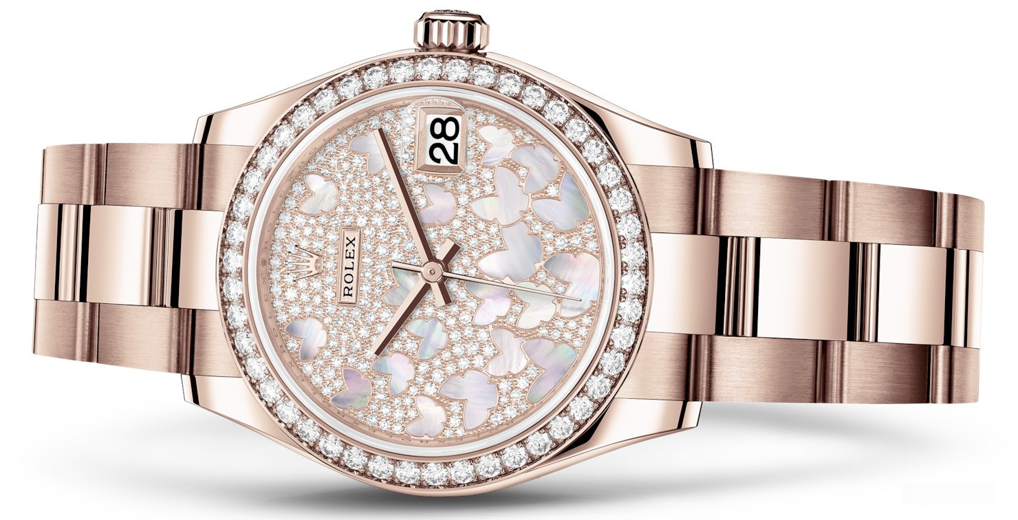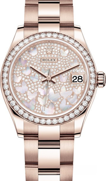 Часы Rolex Datejust Datejust 31mm Everose Gold 278285rbr-0009 выпущены в круглом корпусе из розового золота 18к. Размер составляет 31 мм, водонепроницаемость 100 м. Внутри корпуса установлен автоматический механизм, Калибр 2236 с запасом хода 55 часов. На золотистом с белым жемчужным и белыми бриллиантами циферблате отображаются часы, минуты, секунды, дата. Часы комплектуются браслетом из розового золота 18к. Безель из белых бриллиантов.