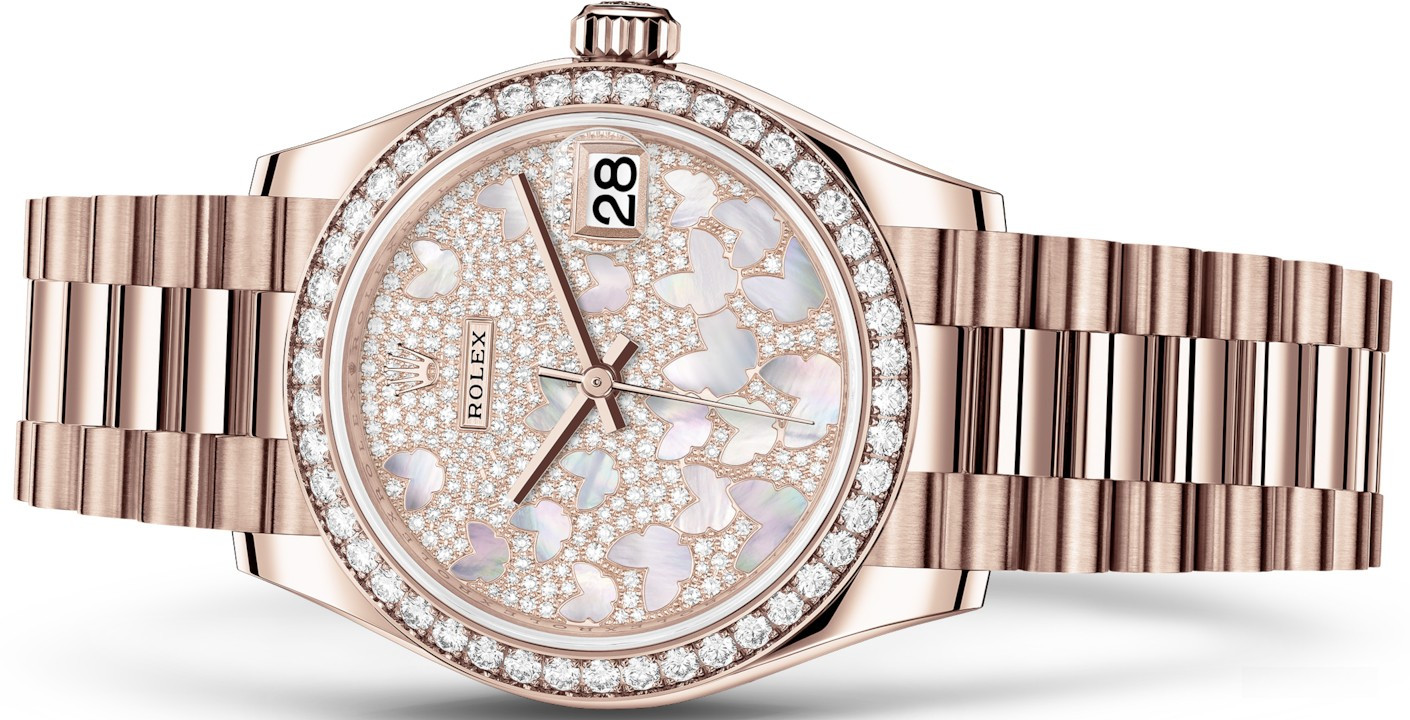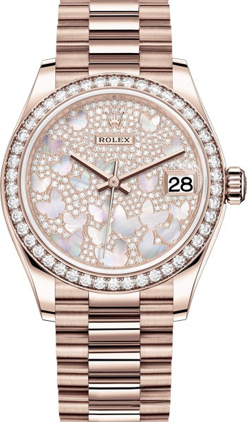 Часы Rolex Datejust Datejust 31mm Everose Gold 278285rbr-0010 выпущены в круглом корпусе из розового золота 18к. Размер составляет 31 мм, водонепроницаемость 100 м. Внутри корпуса установлен автоматический механизм. На циферблате с белыми бриллиантами отображаются часы, минуты, секунды, дата. Часы комплектуются браслетом из розового золота, 18к и откидной застежкой. Безель из белых бриллиантов.