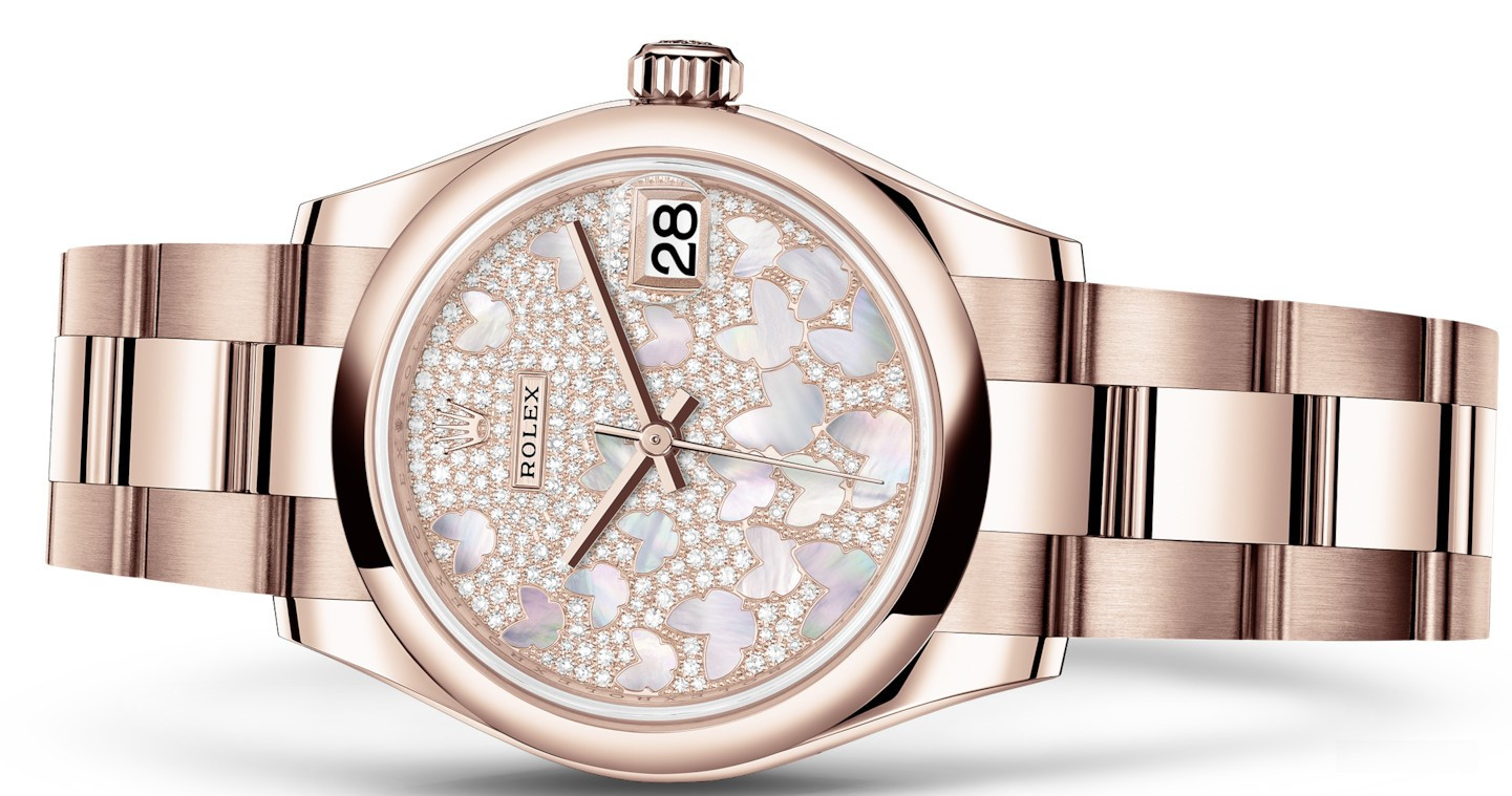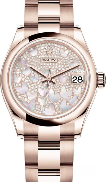 Часы Rolex Datejust Datejust 31mm Everose Gold 278245-0019 выпущены в круглом корпусе из розового золота 18к. Размер составляет 31 мм, водонепроницаемость 100 м. Внутри корпуса установлен автоматический механизм, Калибр 2236 с запасом хода 55 часов. На золотистом с белым жемчужным и белыми бриллиантами циферблате отображаются часы, минуты, секунды, дата. Часы комплектуются браслетом из розового золота 18к.