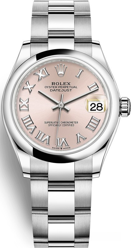 Водостойкие часы Rolex Datejust Datejust 31mm Steel выпущены в круглом корпусе из нержавеющей стали. Размер составляет 31 мм, водонепроницаемость 100 м. Внутри корпуса установлен автоматический механизм, Калибр Rolex 2236, обладающий запасом хода 55 часов. На розовом циферблате отображаются часы, минуты, секунды, дата. Часы комплектуются браслетом из нержавеющей стали.