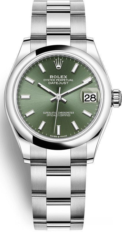Водостойкие часы Rolex Datejust Datejust 31mm Steel выпущены в круглом корпусе из нержавеющей стали. Размер составляет 31 мм, водонепроницаемость 100 м. Внутри корпуса установлен автоматический механизм, Калибр Rolex 2236, обладающий запасом хода 55 часов. На зеленом циферблате отображаются часы, минуты, секунды, дата. Часы комплектуются браслетом из нержавеющей стали.