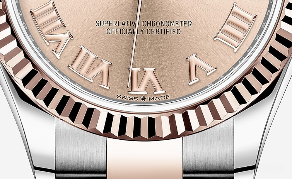 Часы Rolex Datejust Datejust 31mm Steel and Everose Gold - женские современные часы диаметром 31 х 10 мм из розового золота и нержавеющей стали. Модель оснащена механизмом Rolex 2235 с устройством автоматического подзавода «Вечный ротор». Часы имеют золотистый циферблат, сапфировое стекло с антибликовым покрытием, а в положении «3 часа» расположено окошко даты. Знаменитая циклопная линза, добавленная к обычному стеклу, – изобретение компании Rolex 1953 года – позволяет в 2,5 раза увеличить размер даты для более удобного считывания показаний. Уровень водонепроницаемости до 100 м. Модель дополнена браслетом из 18 кратного розового золота и нержавеющей стали.
