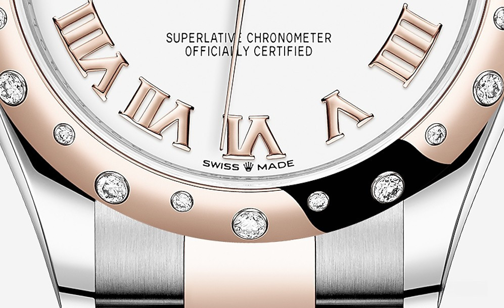 Часы Rolex Datejust Datejust 31mm Steel and Everose Gold - женские современные часы размером 31 х 10 мм из  розового золота и нержавеющей стали. Модель оснащена механизмом Rolex 2236 с устройством автоматического подзавода «Вечный ротор». Часы имеют белый циферблат, сапфировое стекло с антибликовым покрытием, а в положении «3 часа» расположено окошко даты. Знаменитая циклопная линза, добавленная к обычному стеклу, – изобретение компании Rolex 1953 года – позволяет в 2,5 раза увеличить размер даты для более удобного считывания показаний. Уровень водонепроницаемости до 100 м. Модель дополнена браслетом из 18 кратного розового золота и нержавеющей стали. Безель из белых бриллиантов.