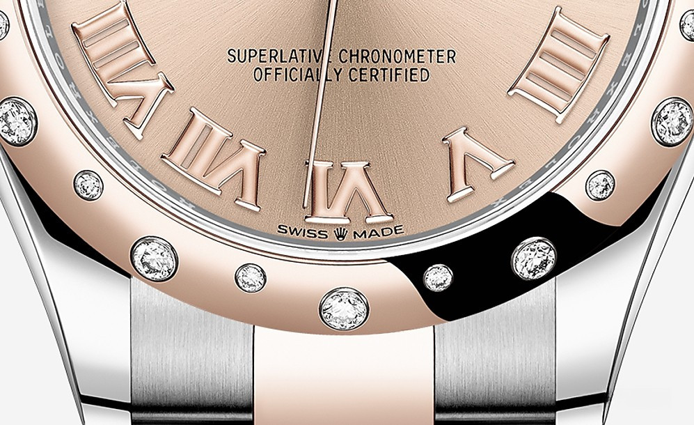 Часы Rolex Datejust Datejust 31mm Steel and Everose Gold - женские современные часы размером 31 х 10 мм из  розового золота и нержавеющей стали. Модель оснащена механизмом Rolex 2236 с устройством автоматического подзавода «Вечный ротор». Часы имеют золотистый циферблат, сапфировое стекло с антибликовым покрытием, а в положении «3 часа» расположено окошко даты. Знаменитая циклопная линза, добавленная к обычному стеклу, – изобретение компании Rolex 1953 года – позволяет в 2,5 раза увеличить размер даты для более удобного считывания показаний. Уровень водонепроницаемости до 100 м. Модель дополнена браслетом из 18 кратного розового золота и нержавеющей стали. Безель из белых бриллиантов.