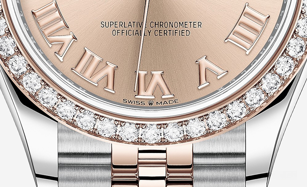 Часы Rolex Datejust Datejust 31mm Steel and Everose Gold - женские современные часы размером 31 х 10 мм из  розового золота и нержавеющей стали. Модель оснащена механизмом Rolex 2236 с устройством автоматического подзавода «Вечный ротор». Часы имеют золотистый циферблат, сапфировое стекло с антибликовым покрытием, а в положении «3 часа» расположено окошко даты. Знаменитая циклопная линза, добавленная к обычному стеклу, – изобретение компании Rolex 1953 года – позволяет в 2,5 раза увеличить размер даты для более удобного считывания показаний. Уровень водонепроницаемости до 100 м. Модель дополнена браслетом из 18 кратного розового золота и нержавеющей стали. Безель из белых бриллиантов.