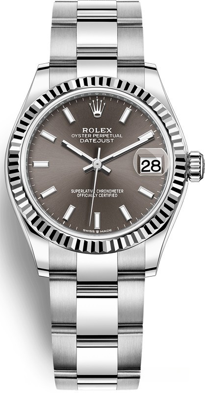 Водостойкие часы Rolex Datejust Datejust 31mm Steel and White Gold выпущены в круглом корпусе из белого золота и нержавеющей стали. Размер составляет 31 мм, водонепроницаемость 100 м. Внутри корпуса установлен автоматический механизм, Калибр Rolex 2236, обладающий запасом хода 55 часов. На сером циферблате отображаются часы, минуты, секунды, дата. Часы комплектуются браслетом из белого золота 18к и нержавеющей стали.