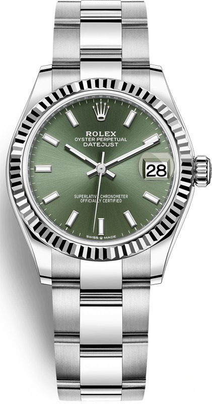 Водостойкие часы Rolex Datejust Datejust 31mm Steel and White Gold выпущены в круглом корпусе из белого золота и нержавеющей стали. Размер составляет 31 мм, водонепроницаемость 100 м. Внутри корпуса установлен автоматический механизм, Калибр Rolex 2236, обладающий запасом хода 55 часов. На зеленом циферблате отображаются часы, минуты, секунды, дата. Часы комплектуются браслетом из белого золота 18к и нержавеющей стали.