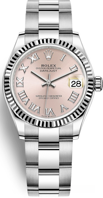 Водостойкие часы Rolex Datejust Datejust 31mm Steel and White Gold выпущены в круглом корпусе из белого золота и нержавеющей стали. Размер составляет 31 мм, водонепроницаемость 100 м. Внутри корпуса установлен автоматический механизм, Калибр Rolex 2236, обладающий запасом хода 55 часов. На розовом циферблате отображаются часы, минуты, секунды, дата. Часы комплектуются браслетом из белого золота 18к и нержавеющей стали.