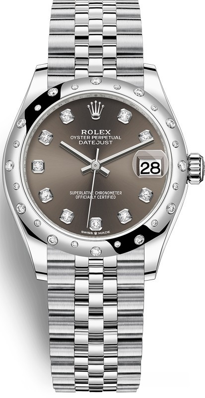 Водостойкие часы Rolex Datejust Datejust 31mm Steel and White Gold выпущены в круглом корпусе из белого золота и нержавеющей стали. Размер составляет 31 мм, водонепроницаемость 100 м. Внутри корпуса установлен автоматический механизм, Калибр Rolex 2236, обладающий запасом хода 55 часов. На сером циферблате с 10-ю белыми бриллиантами отображаются часы, минуты, секунды, дата. Часы комплектуются браслетом из белого золота 18к и нержавеющей стали. Безель из белых бриллиантов.