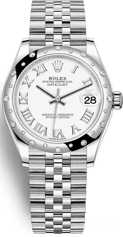 Водостойкие часы Rolex Datejust Datejust 31mm Steel and White Gold выпущены в круглом корпусе из белого золота и нержавеющей стали. Размер составляет 31 мм, водонепроницаемость 100 м. Внутри корпуса установлен автоматический механизм, Калибр Rolex 2236, обладающий запасом хода 55 часов. На белом циферблате отображаются часы, минуты, секунды, дата. Часы комплектуются браслетом из белого золота 18к и нержавеющей стали. Безель из белых бриллиантов.