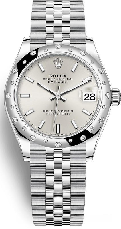 Водостойкие часы Rolex Datejust Datejust 31mm Steel and White Gold выпущены в круглом корпусе из белого золота и нержавеющей стали. Размер составляет 31 мм, водонепроницаемость 100 м. Внутри корпуса установлен автоматический механизм, Калибр Rolex 2236, обладающий запасом хода 55 часов. На серебристом циферблате отображаются часы, минуты, секунды, дата. Часы комплектуются браслетом из белого золота 18к и нержавеющей стали. Безель из белых бриллиантов.