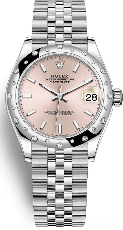 Водостойкие часы Rolex Datejust Datejust 31mm Steel and White Gold выпущены в круглом корпусе из белого золота и нержавеющей стали. Размер составляет 31 мм, водонепроницаемость 100 м. Внутри корпуса установлен автоматический механизм, Калибр Rolex 2236, обладающий запасом хода 55 часов. На розовом циферблате отображаются часы, минуты, секунды, дата. Часы комплектуются браслетом из белого золота 18к и нержавеющей стали. Безель из белых бриллиантов.