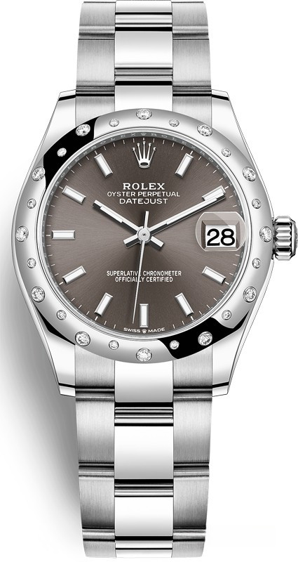 Водостойкие часы Rolex Datejust Datejust 31mm Steel and White Gold выпущены в круглом корпусе из белого золота и нержавеющей стали. Размер составляет 31 мм, водонепроницаемость 100 м. Внутри корпуса установлен автоматический механизм, Калибр Rolex 2236, обладающий запасом хода 55 часов. На сером циферблате отображаются часы, минуты, секунды, дата. Часы комплектуются браслетом из белого золота 18к и нержавеющей стали. Безель из белых бриллиантов.