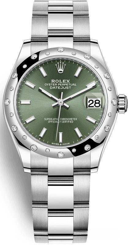 Водостойкие часы Rolex Datejust Datejust 31mm Steel and White Gold выпущены в круглом корпусе из белого золота и нержавеющей стали. Размер составляет 31 мм, водонепроницаемость 100 м. Внутри корпуса установлен автоматический механизм, Калибр Rolex 2236, обладающий запасом хода 55 часов. На зеленом циферблате отображаются часы, минуты, секунды, дата. Часы комплектуются браслетом из белого золота 18к и нержавеющей стали. Безель из белых бриллиантов.