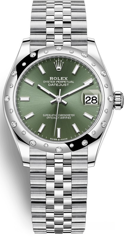 Водостойкие часы Rolex Datejust Datejust 31mm Steel and White Gold выпущены в круглом корпусе из белого золота и нержавеющей стали. Размер составляет 31 мм, водонепроницаемость 100 м. Внутри корпуса установлен автоматический механизм, Калибр Rolex 2236, обладающий запасом хода 55 часов. На зеленом циферблате отображаются часы, минуты, секунды, дата. Часы комплектуются браслетом из белого золота 18к и нержавеющей стали. Безель из белых бриллиантов.