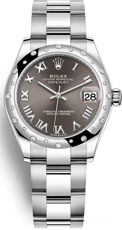 Водостойкие часы Rolex Datejust Datejust 31mm Steel and White Gold выпущены в круглом корпусе из белого золота и нержавеющей стали. Размер составляет 31 мм, водонепроницаемость 100 м. Внутри корпуса установлен автоматический механизм, Калибр Rolex 2236, обладающий запасом хода 55 часов. На сером циферблате отображаются часы, минуты, секунды, дата. Часы комплектуются браслетом из белого золота 18к и нержавеющей стали. Безель из белых бриллиантов.