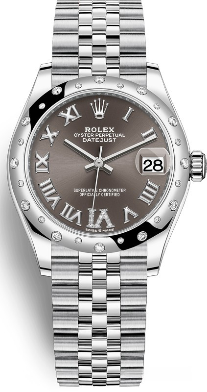 Водостойкие часы Rolex Datejust Datejust 31mm Steel and White Gold выпущены в круглом корпусе из белого золота и нержавеющей стали. Размер составляет 31 мм, водонепроницаемость 100 м. Внутри корпуса установлен автоматический механизм, Калибр Rolex 2236, обладающий запасом хода 55 часов. На сером циферблате с белыми бриллиантами отображаются часы, минуты, секунды, дата. Часы комплектуются браслетом из белого золота 18к и нержавеющей стали. Безель из белых бриллиантов.