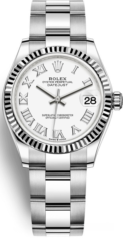 Водостойкие часы Rolex Datejust Datejust 31mm Steel and White Gold выпущены в круглом корпусе из белого золота и нержавеющей стали. Размер составляет 31 мм, водонепроницаемость 100 м. Внутри корпуса установлен автоматический механизм, Калибр Rolex 2236, обладающий запасом хода 55 часов. На белом циферблате отображаются часы, минуты, секунды, дата. Часы комплектуются браслетом из белого золота 18к и нержавеющей стали.