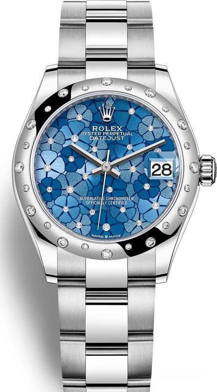 Водостойкие часы Rolex Datejust Datejust 31mm Steel and White Gold выпущены в круглом корпусе из белого золота и нержавеющей стали. Размер составляет 31 мм, водонепроницаемость 100 м. Внутри корпуса установлен автоматический механизм, Калибр Rolex 2236, обладающий запасом хода 55 часов. На синем циферблате с белыми бриллиантами отображаются часы, минуты, секунды, дата. Часы комплектуются браслетом из нержавеющей стали. Безель из белых бриллиантов.