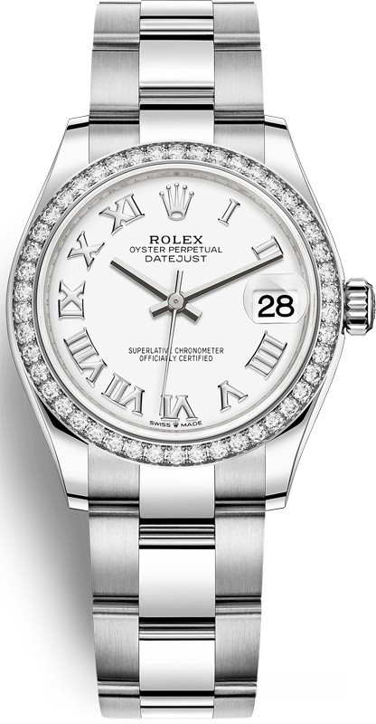 Водостойкие часы Rolex Datejust Datejust 31mm Steel and White Gold выпущены в круглом корпусе из белого золота и нержавеющей стали. Размер составляет 31 мм, водонепроницаемость 100 м. Внутри корпуса установлен автоматический механизм, Калибр Rolex 2236, обладающий запасом хода 55 часов. На белом циферблате отображаются часы, минуты, секунды, дата. Часы комплектуются браслетом из белого золота 18к и нержавеющей стали. Безель из белых бриллиантов.