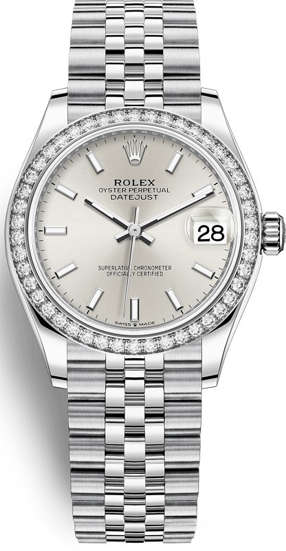 Водостойкие часы Rolex Datejust Datejust 31mm Steel and White Gold выпущены в круглом корпусе из белого золота и нержавеющей стали. Размер составляет 31 мм, водонепроницаемость 100 м. Внутри корпуса установлен автоматический механизм, Калибр Rolex 2236, обладающий запасом хода 55 часов. На серебристом циферблате отображаются часы, минуты, секунды, дата. Часы комплектуются браслетом из белого золота 18к и нержавеющей стали. Безель из белых бриллиантов.