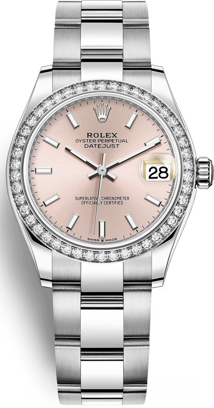 Водостойкие часы Rolex Datejust Datejust 31mm Steel and White Gold выпущены в круглом корпусе из белого золота и нержавеющей стали. Размер составляет 31 мм, водонепроницаемость 100 м. Внутри корпуса установлен автоматический механизм, Калибр Rolex 2236, обладающий запасом хода 55 часов. На розовом циферблате отображаются часы, минуты, секунды, дата. Часы комплектуются браслетом из белого золота 18к и нержавеющей стали. Безель из белых бриллиантов.