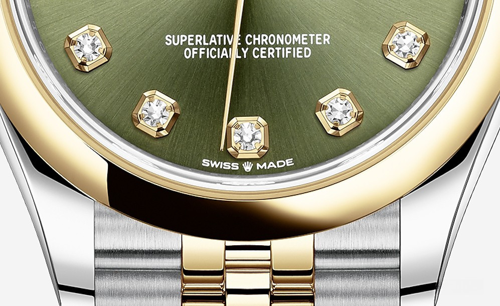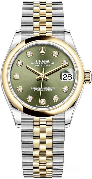 Водостойкие часы Rolex Datejust Datejust 31mm Steel and Yellow Gold выпущены в круглом корпусе из желтого золота 18к и нержавеющей стали. Размер составляет 31 мм, водонепроницаемость 100 м. Внутри корпуса установлен автоматический механизм. На зеленом циферблате с 10-ю белыми бриллиантами отображаются часы, минуты, секунды, дата. Часы комплектуются браслетом из желтого золота 18к и нержавеющей стали.