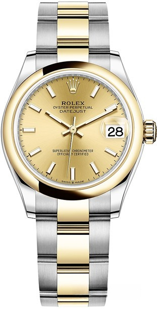 Водостойкие часы Rolex Datejust Datejust 31mm Steel and Yellow Gold выпущены в круглом корпусе из желтого золота 18к и нержавеющей стали. Размер составляет 31 мм, водонепроницаемость 100 м. Внутри корпуса установлен автоматический механизм. На золотистом циферблате отображаются часы, минуты, секунды, дата. Часы комплектуются браслетом из желтого золота, 18к и нержавеющей стали.