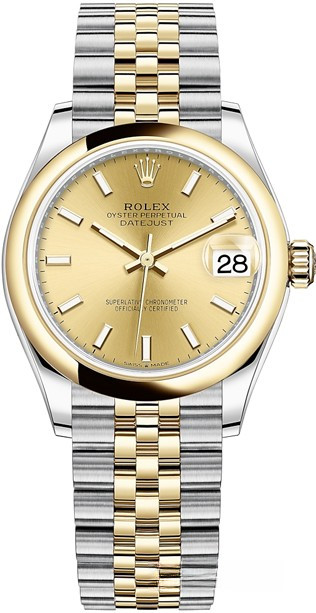 Водостойкие часы Rolex Datejust Datejust 31mm Steel and Yellow Gold выпущены в круглом корпусе из желтого золота 18к и нержавеющей стали. Размер составляет 31 мм, водонепроницаемость 100 м. Внутри корпуса установлен автоматический механизм. На золотистом циферблате отображаются часы, минуты, секунды, дата. Часы комплектуются браслетом из желтого золота 18к и нержавеющей стали.