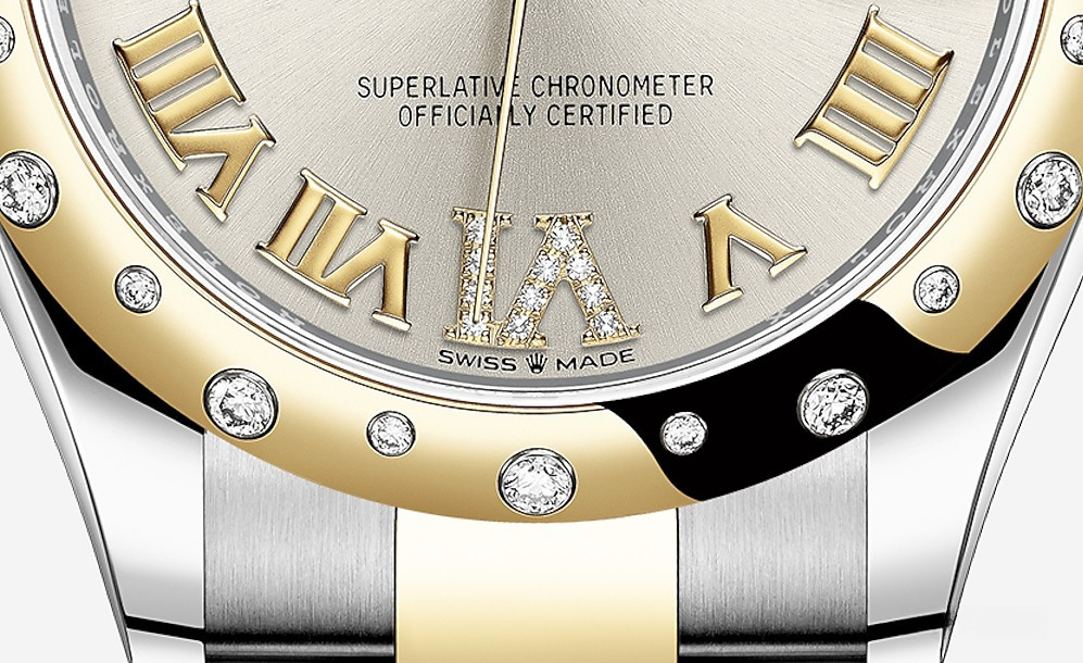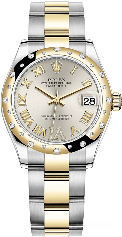 Водостойкие часы Rolex Datejust Datejust 31mm Steel and Yellow Gold выпущены в круглом корпусе из желтого золота 18к и нержавеющей стали. Размер составляет 31 мм, водонепроницаемость 100 м. Внутри корпуса установлен автоматический механизм. На серебристом циферблате с белыми бриллиантами отображаются часы, минуты, секунды, дата. Часы комплектуются браслетом из желтого золота, 18к и нержавеющей стали. Безель из белых бриллиантов.