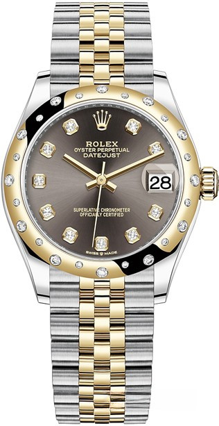 Водостойкие часы Rolex Datejust Datejust 31mm Steel and Yellow Gold выпущены в круглом корпусе из желтого золота 18к и нержавеющей стали. Размер составляет 31 мм, водонепроницаемость 100 м. Внутри корпуса установлен автоматический механизм. На коричневом циферблате с 10-ю белыми бриллиантами отображаются часы, минуты, секунды, дата. Часы комплектуются браслетом из желтого золота 18к и нержавеющей стали. Безель из белых бриллиантов.